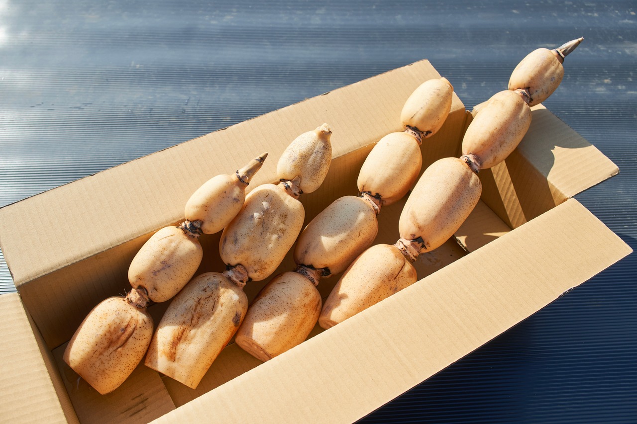 夏は水分値が高くシャキシャキとした食感ですが、寒くなるにつれて糖化が進み甘くてホクホクな食感に仕上がってきます。